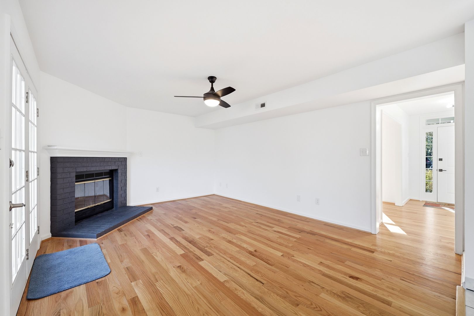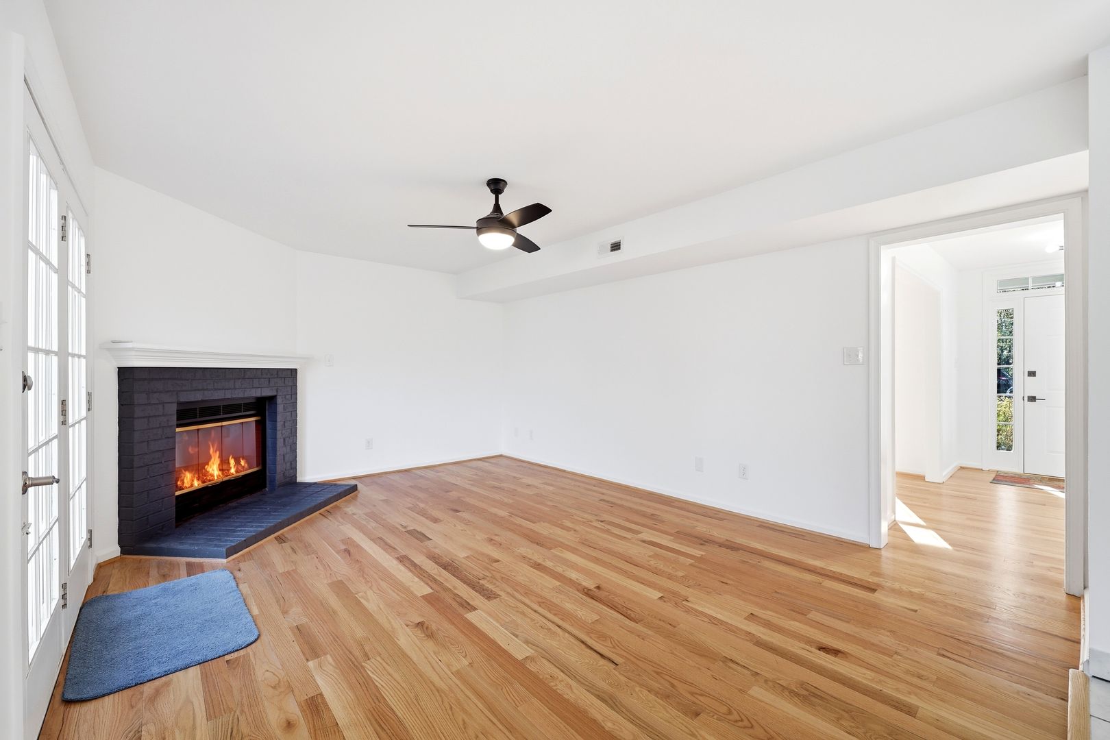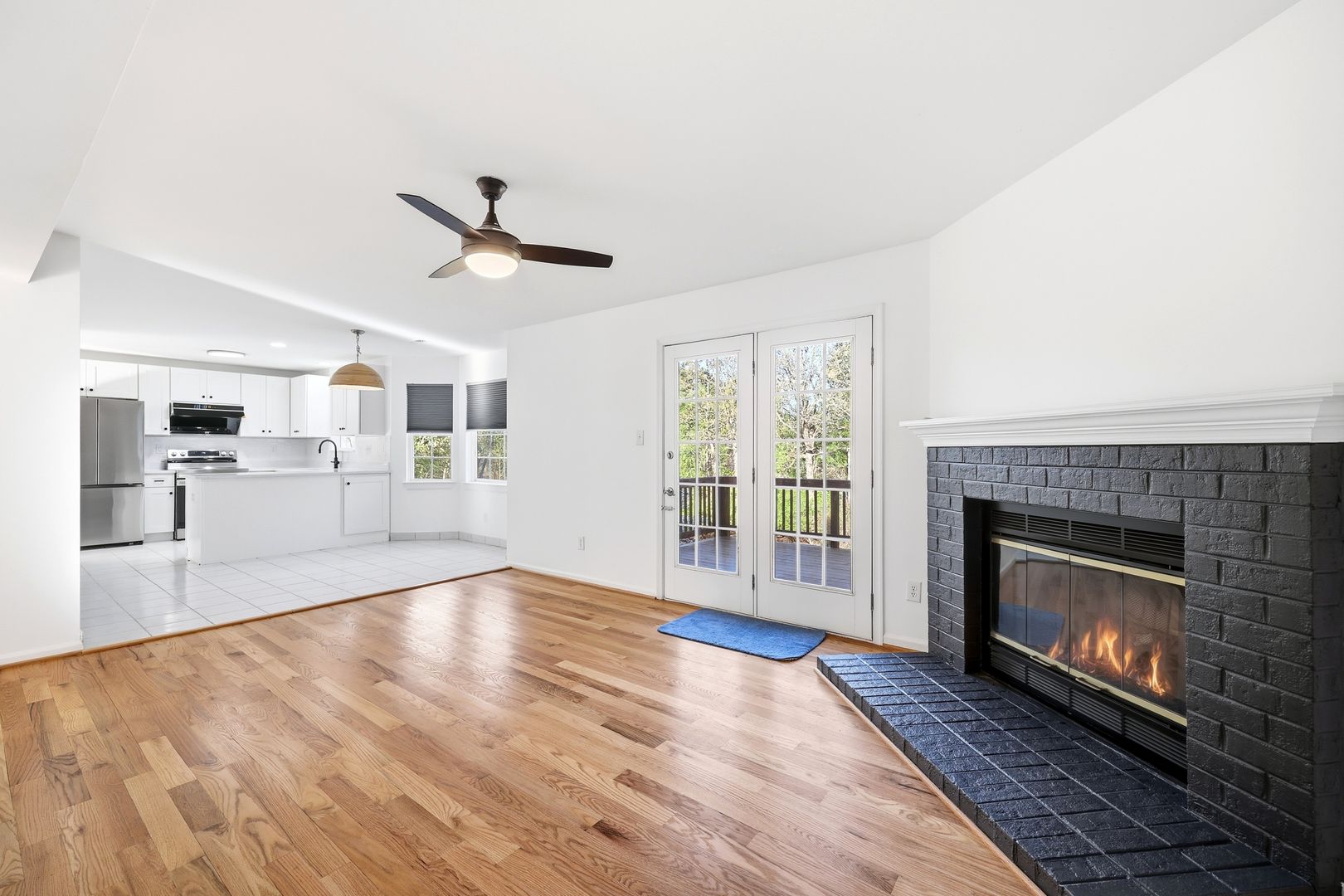 Inside, the home features fresh paint, brand-new carpet, and professional cleaning, making it completely move-in ready. Window blinds are installed throughout the home for privacy and convenience. The main living area includes a cozy gas fireplace, creating a welcoming space for relaxing or entertaining.