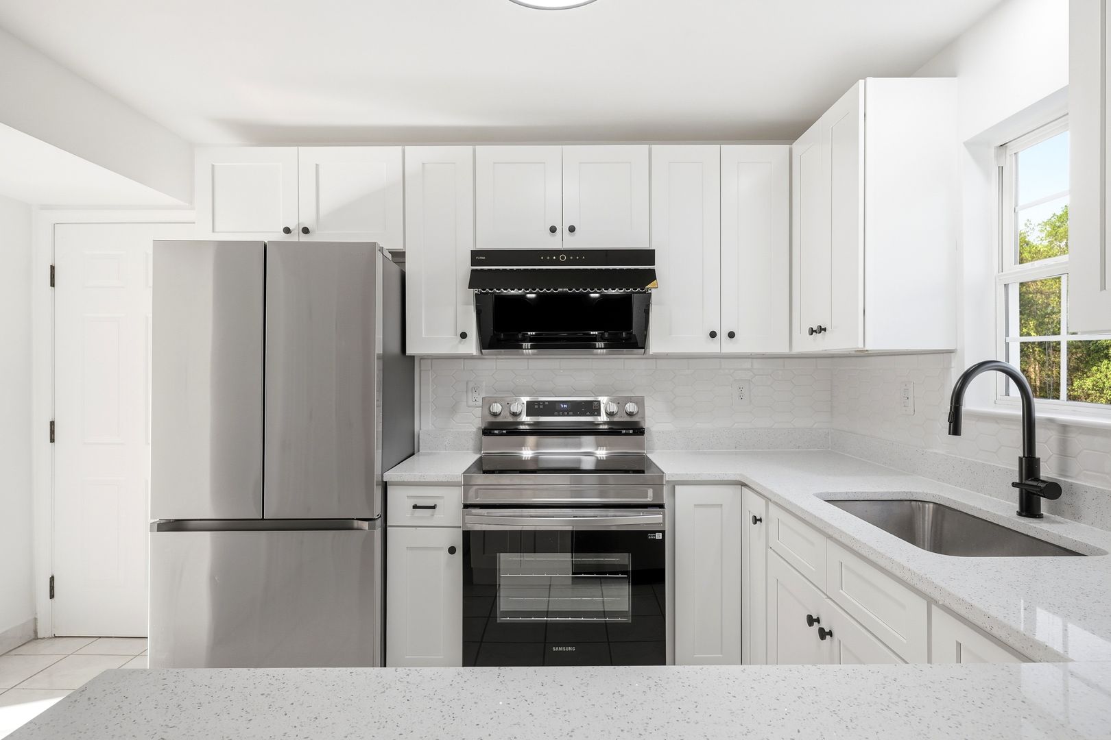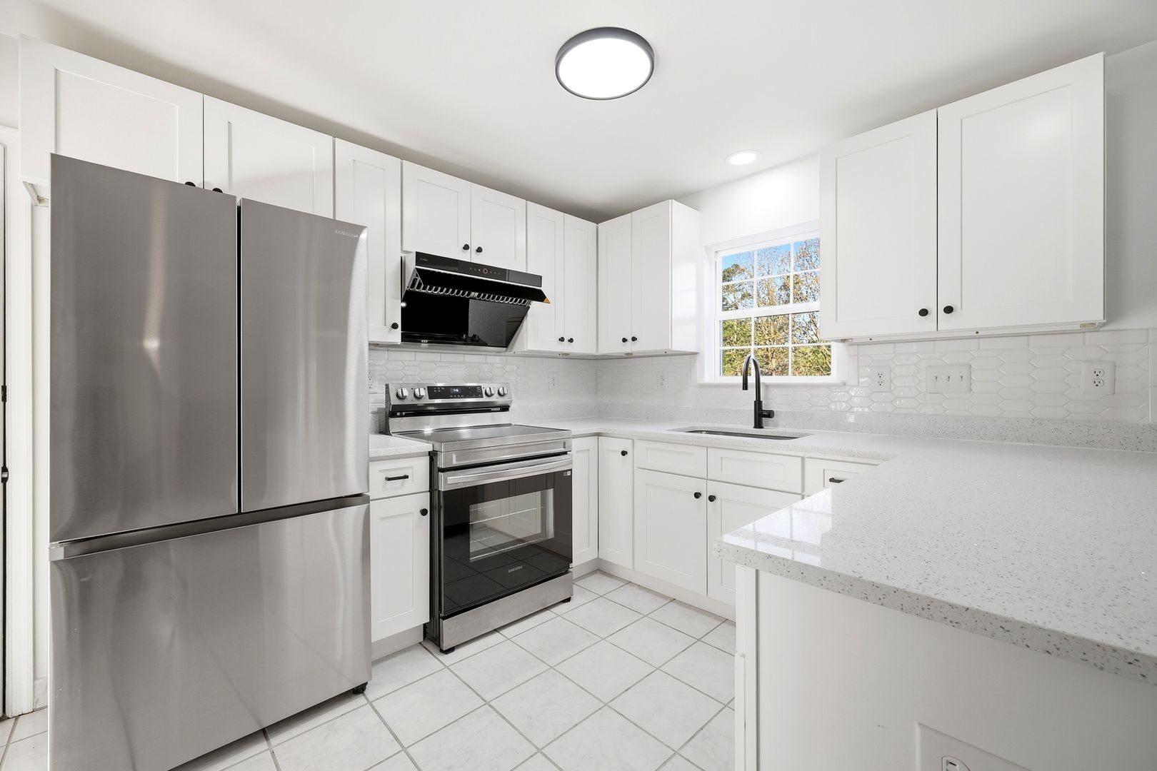 The kitchen is equipped with all new appliances, including a dishwasher, refrigerator, and stove, offering modern functionality for everyday living.