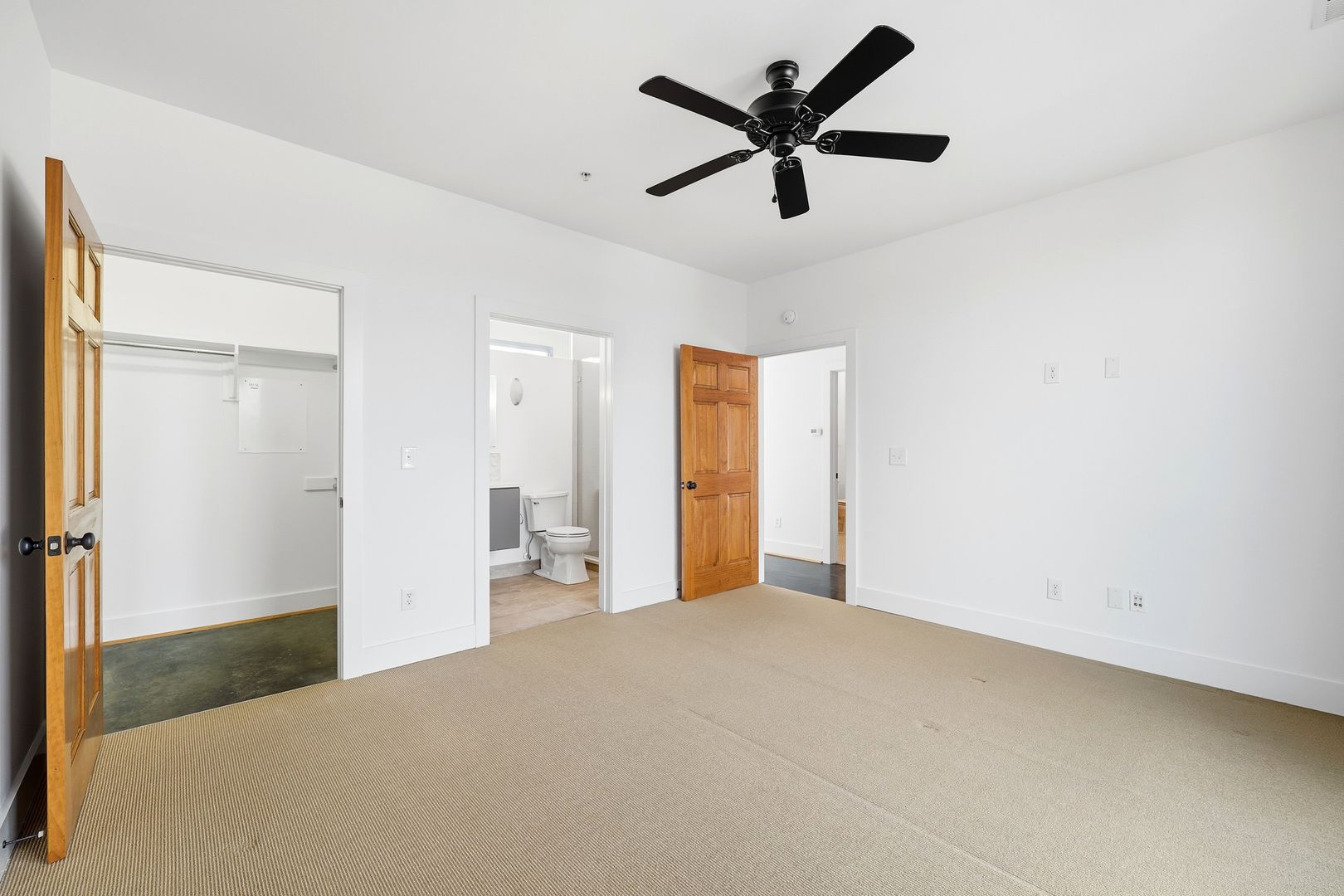 Experience city life at its best in this beautiful contemporary condo located in the heart of Charlottesville’s vibrant Starr Hill neighborhood. Situated in a boutique elevator building just one block from the eclectic shops and restaurants of West Main Street, this unit offers an unbeatable "Walker’s Paradise" lifestyle. The light-filled space features high ceilings, fresh paint, and oversized operable windows that capture both sunrise and sunset views. This single-level home includes 2 spacious bedrooms—each with its own en-suite bath—plus a dedicated office space perfect for remote work. Enjoy a mix of concrete, ceramic tile, and hardwood flooring throughout. The modern kitchen is equipped with granite countertops, maple cabinetry, a kitchen island, and stainless steel appliances. Wired for smart home integration, the unit features LED lighting, Haiku fans, and a high-efficiency HVAC system upgraded in 2020. Includes one dedicated off-street parking space, access to guest overflow parking. Only a 5-10 minute walk to the UVA Hospital Complex, the Downtown Mall, and the Charlottesville Amtrak station. You don't want to miss this one! Visit our website today to schedule a showing! www.blueskypm.com